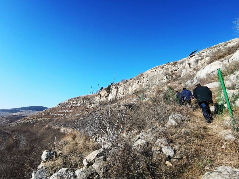 在拉马洼村党支部高书记的带领下,一行人首先参观了泰西抗日武装起义队伍宿营地旧址——鹁鸽崖洞。路上,李有刚教授给我们做了详细的介绍。1938年1月1日,张北华、崔子明等10名抗日志士在鹁鸽崖洞建立起泰西第一支抗日游击队,这个山洞,见证了泰西抗日武装起义最初艰难的日子。鹁鸽崖洞在道朗镇蟠龙山半山腰上,峭壁陡立,深沟悬崖,通向山洞的道路非常崎岖,只有一条一尺多宽的小路,艰难的路程,让我们切实感受到革命先辈们的艰辛与不易,同时也被先辈们舍生忘死,艰苦奋斗的精神所折服。