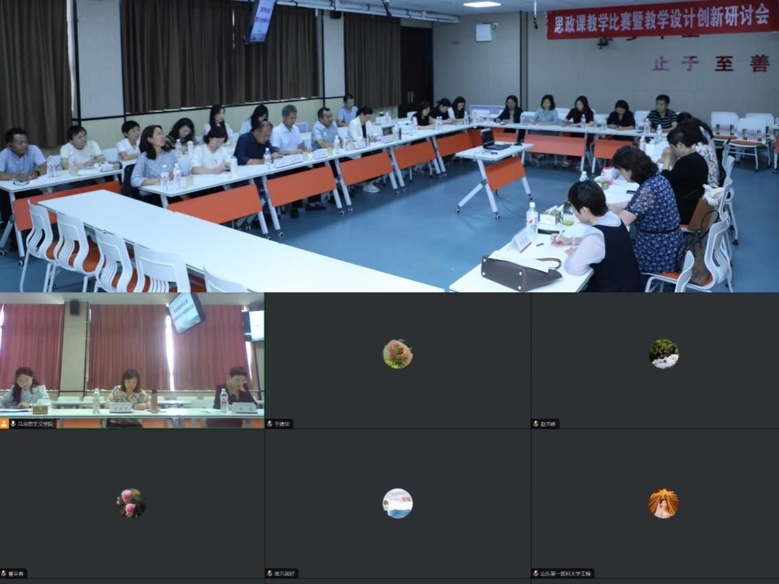 教学设计创新研讨会采用线上线下同步直播的方式进行。李霞教授进行了决赛点评,分享了教科研工作经验。宫晓燕副教授从主讲课程《中国近现代史纲要》第五章《中国革命的新道路》中选取《井冈山根据地的群众动员》为题进行了说课及示范课展示。李变变老师分享了青年教师备赛心得。郭蔚蔚教授以《教学的有痕与无痕》为题,为老师们分享了如何上好一门课、如何建好一门课。任凤琴教授以《思政课线上线下混合式教学研究与实践》为题,从基本情况、经验做法、改革成效及感悟四个方面,分享了一流课程建设经验。