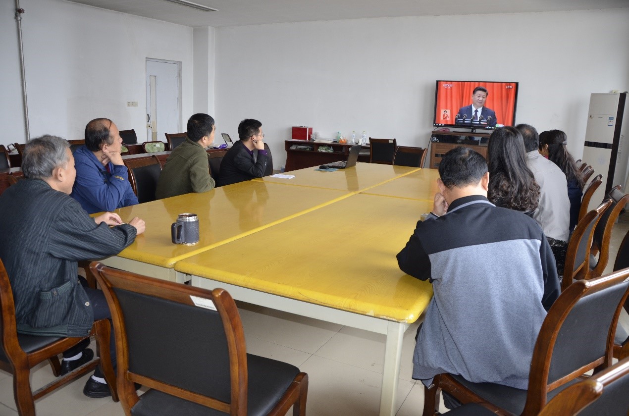 10月18日上午九点,中国共产党第十九次全国代表大会在人民大会堂隆重开幕,公司党总支组织教职工在会议室集体收看十九大开幕会实况直播。