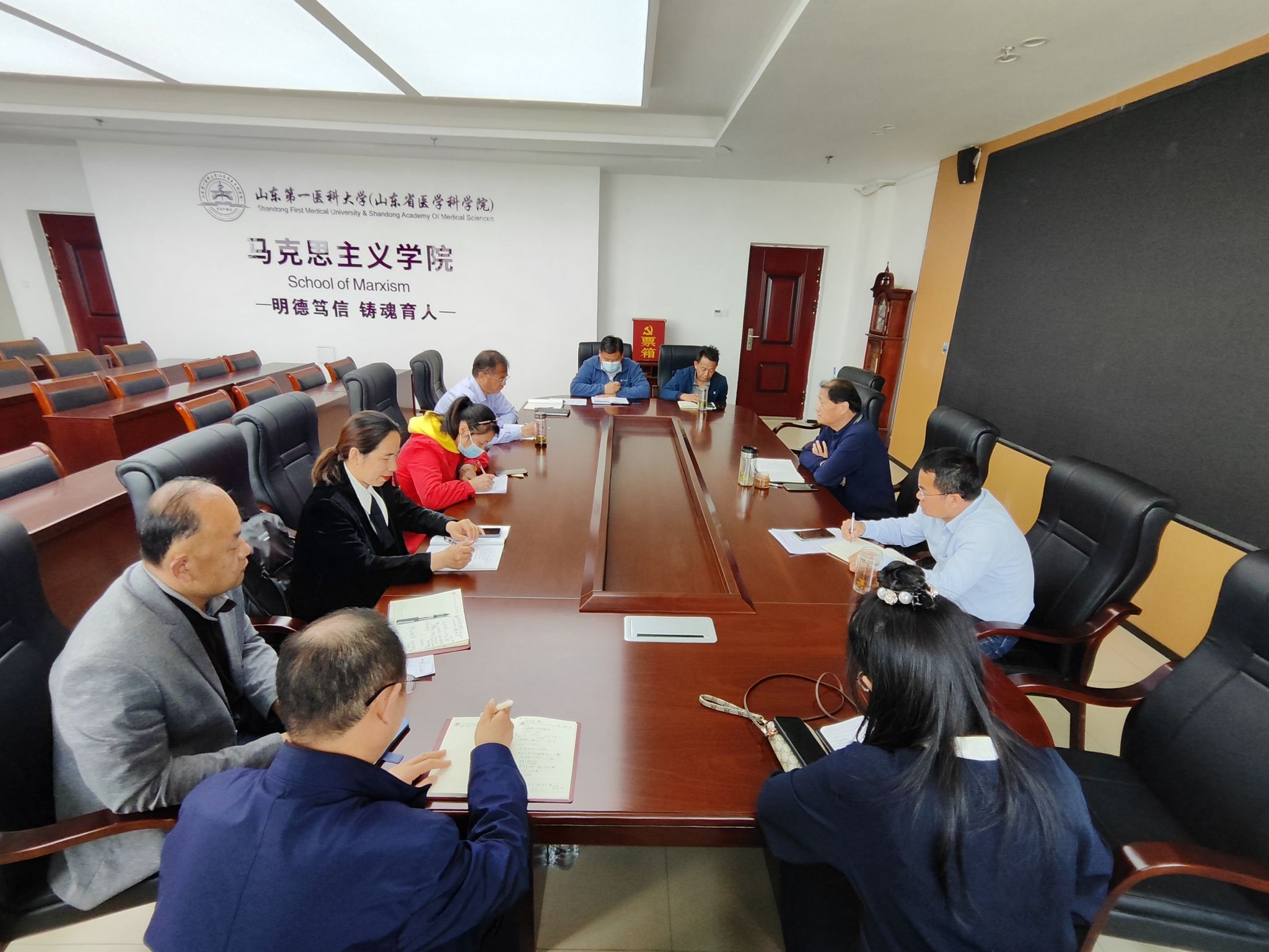 翟承强指出,要深刻理解“学思想、强党性、重实践、建新功”的丰富内涵,扎扎实实开展好主题教育的各项工作,着力实现“凝心铸魂筑牢根本、锤炼品格强化忠诚、实干担当促进发展、践行宗旨为民造福、廉洁奉公树立新风”的目标要求。一是要以主题教育为契机,深入贯彻落实习近平总书记重要讲话精神,围绕落实立德树人根本任务,推进思想政治理论课改革创新。二是要突出问题导向,利用主题教育着力解决制约公司发展的重点难点问题,解决师生员工反映强烈的切身利益问题。三是要把开展主题教育活动同公司重点马院建设,硕士点申报工作结合起来,同公司的思想政治理论课教学改革结合起来,确保主题教育落地见效。